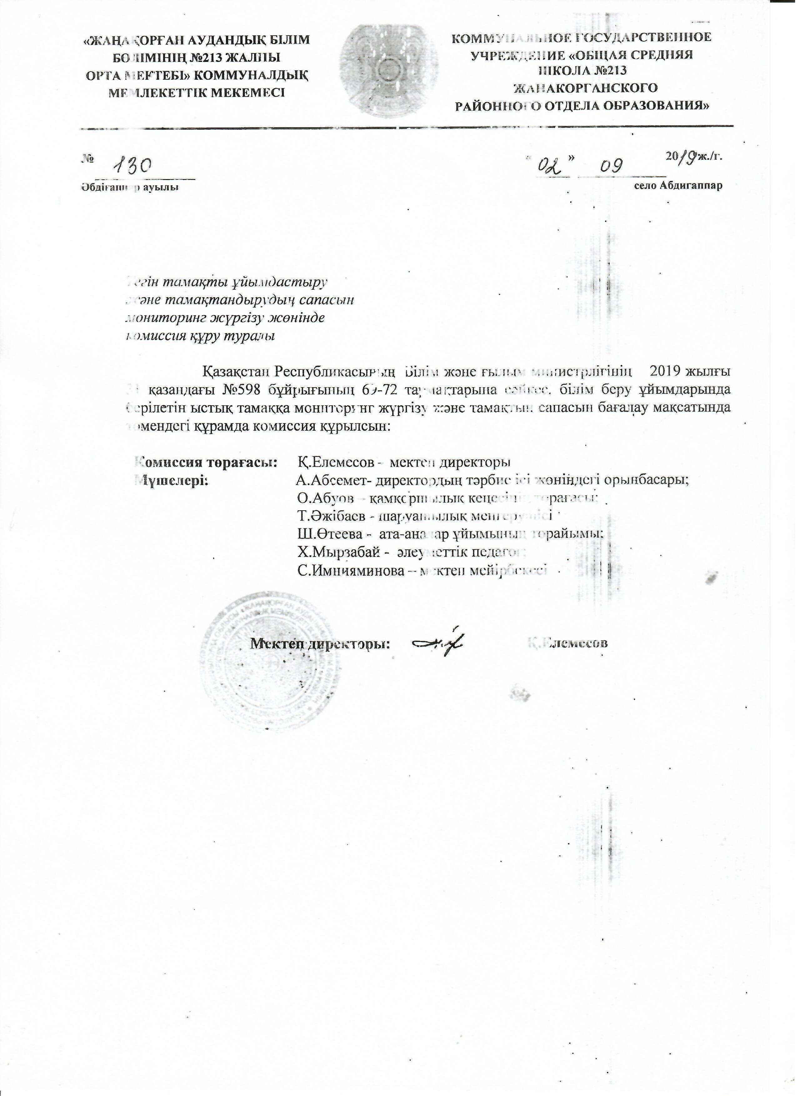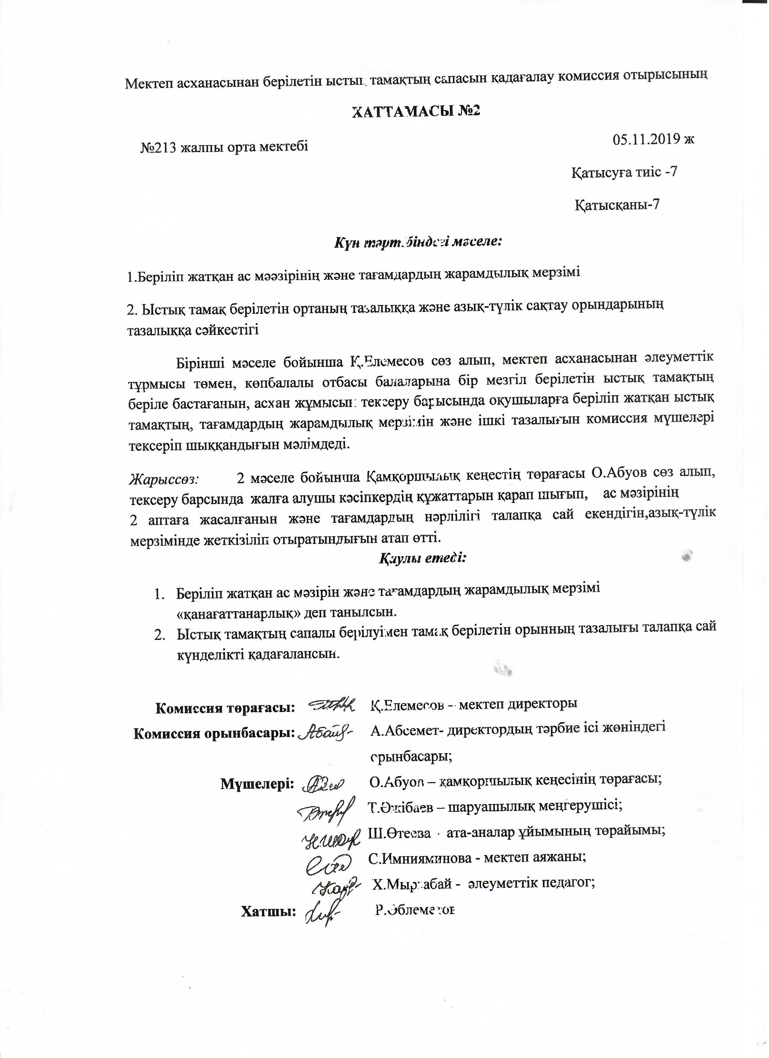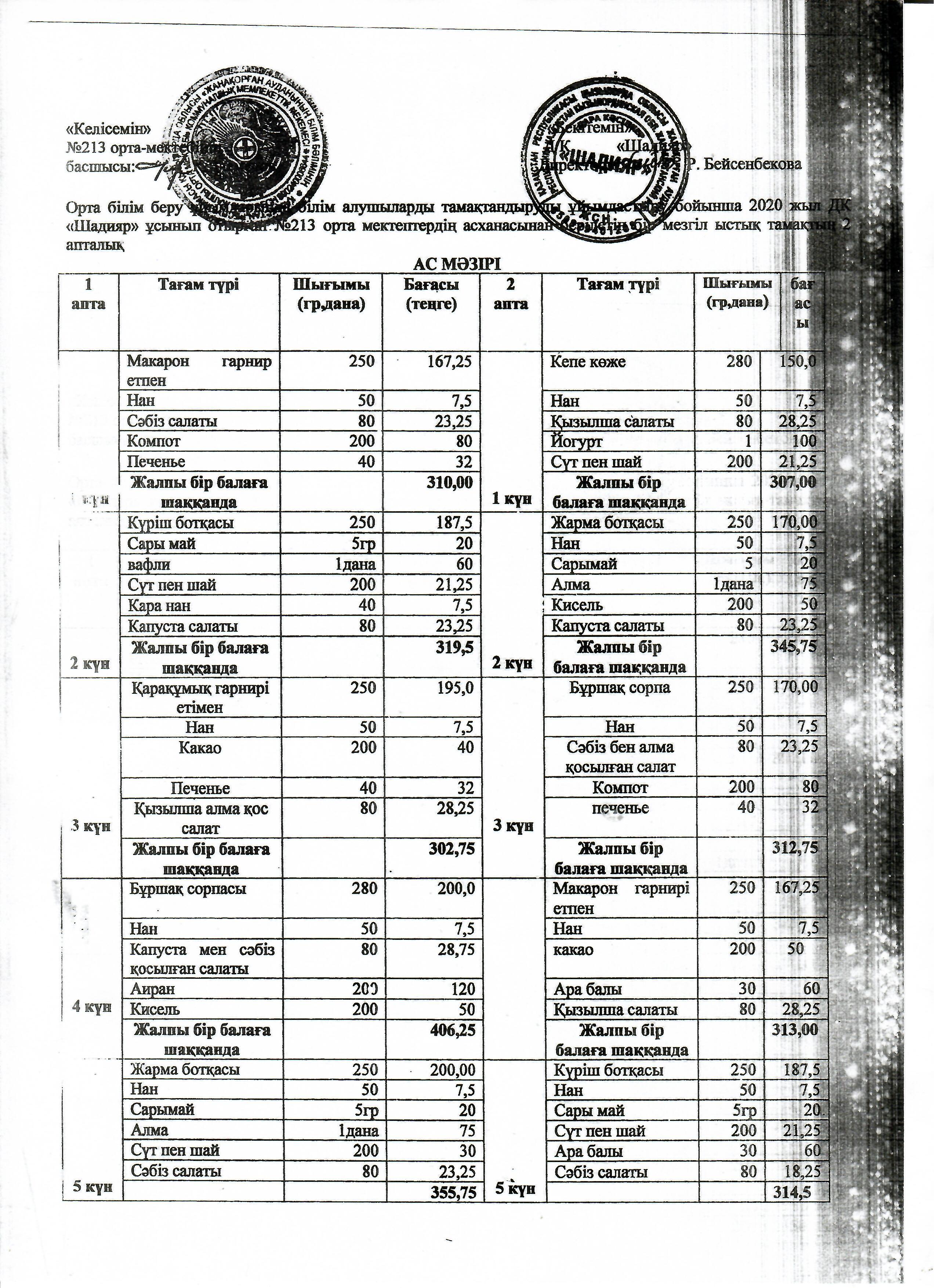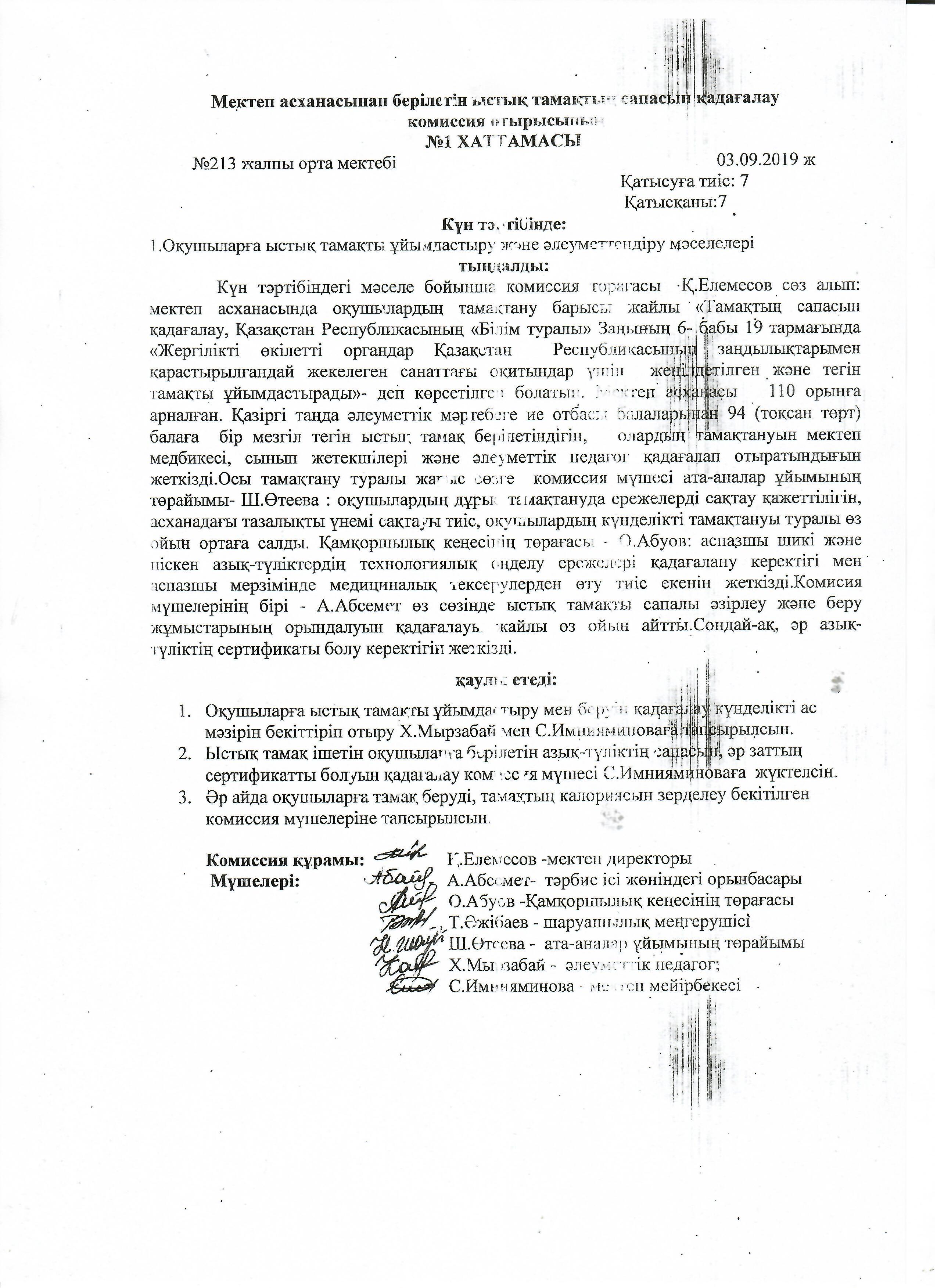 Ыстық тамақ құжаттары » №213 орта мектебі